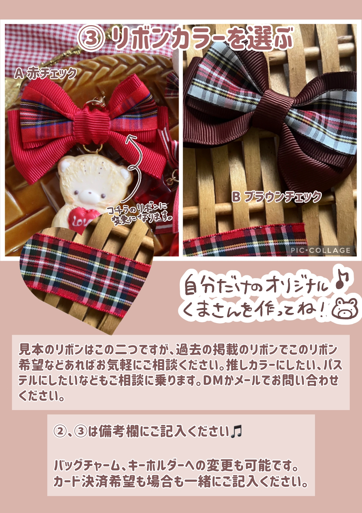 ⚫️くまが持ってるハートチョコのカラー Aボルドー、Bピンク Cチョコ その他色の希望あれば何色でも。